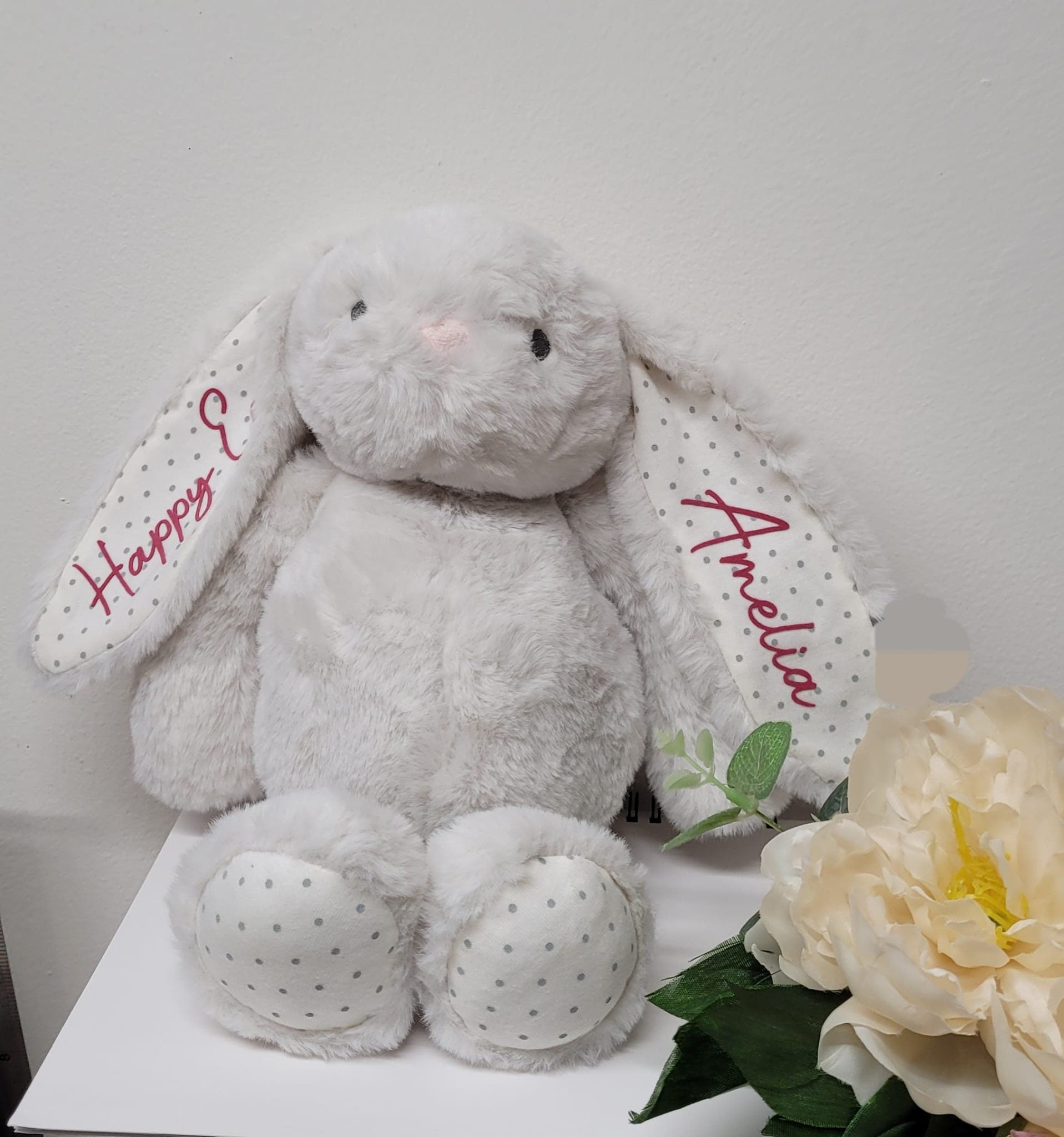 These gorgeous light grey plush soft bunnies make perfect gifts for all ages.